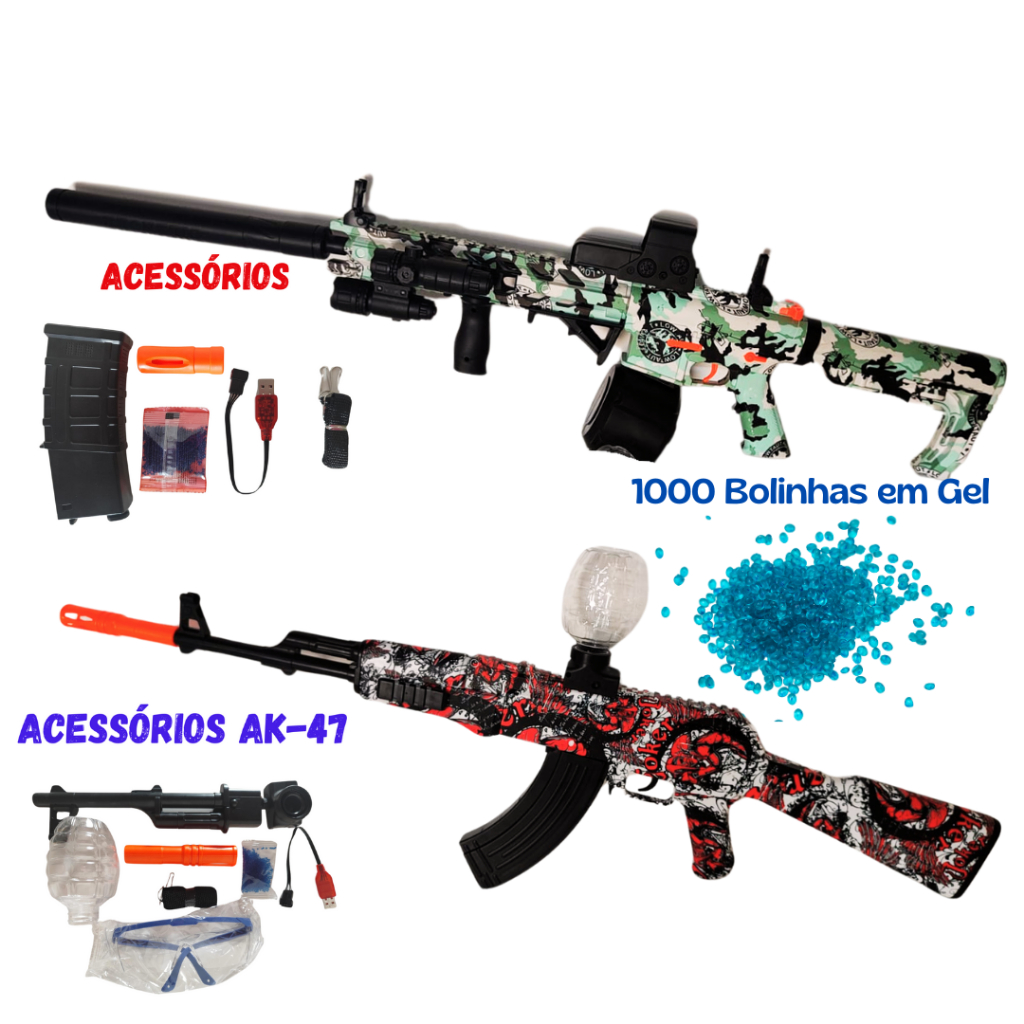 Arminha Ak-47 Brinquedo Metralhadora Automática Bolinha De Gel Recarregável | Vai com 2 Mil Bolinhas