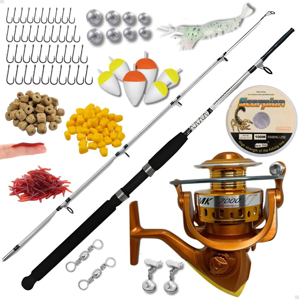 Kit De Pesca Completo Vara 1,65m Fibra Vidro Maciça E Molinete 6000 + Linha 100m