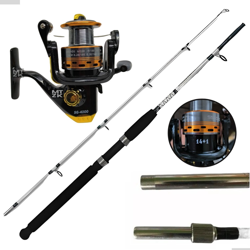 Kit de Pesca Vara 1,65m Fibra Vidro Maciça e Molinete Grande 7000 Drag 20kgs de Alumínio