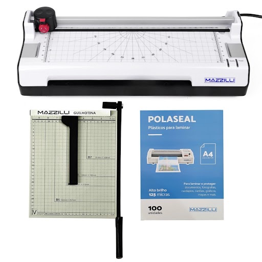 Kit Plastificadora e Laminadora A4 + 100 Lâminas Plástico para Plastificação A4 Polaseal 125 Micras