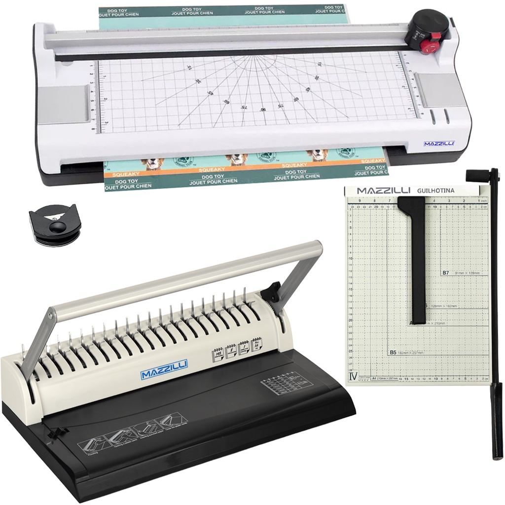 Kit Plastificadora MA320 A4 A5 A6 + Encadernadora + Guilhotina KP22