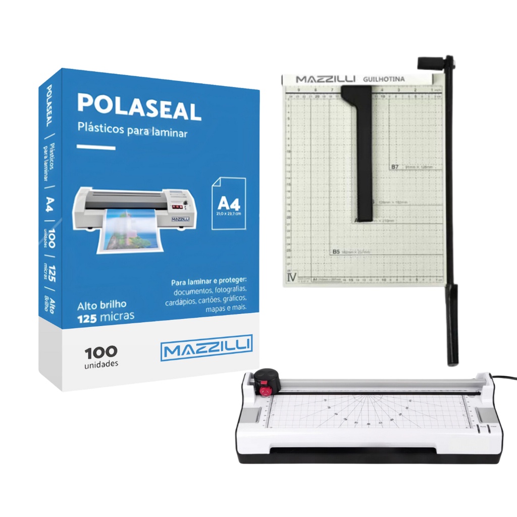 Kit Plastificadora A4 + Guilhotina + Plástico