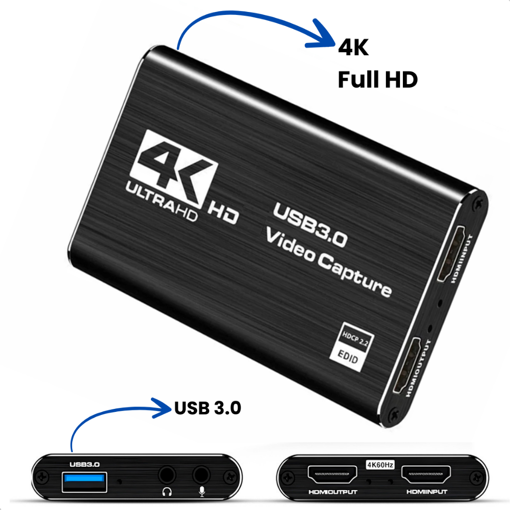 Placa de Captura de Video Full HD 4K 1080p 60Fps USB 3.0 HDMI