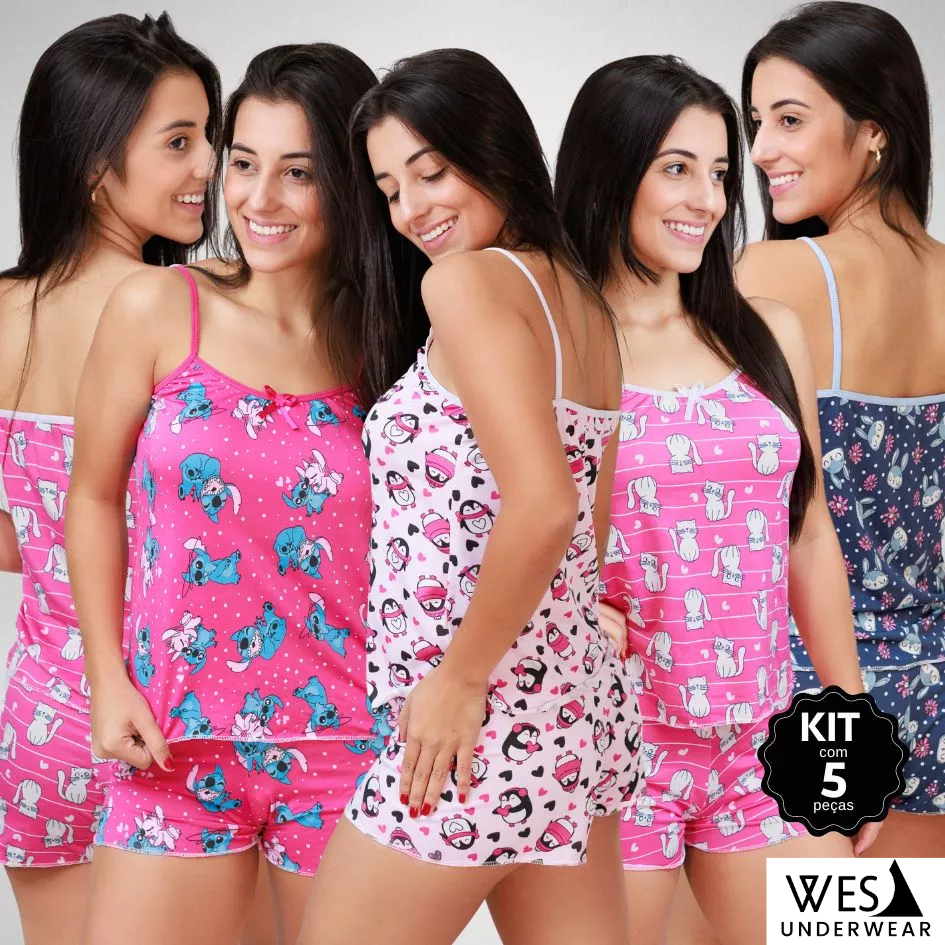 Kit 5 Baby Doll Liganete Conjunto Pijama Feminino Sexy Short Doll Wes