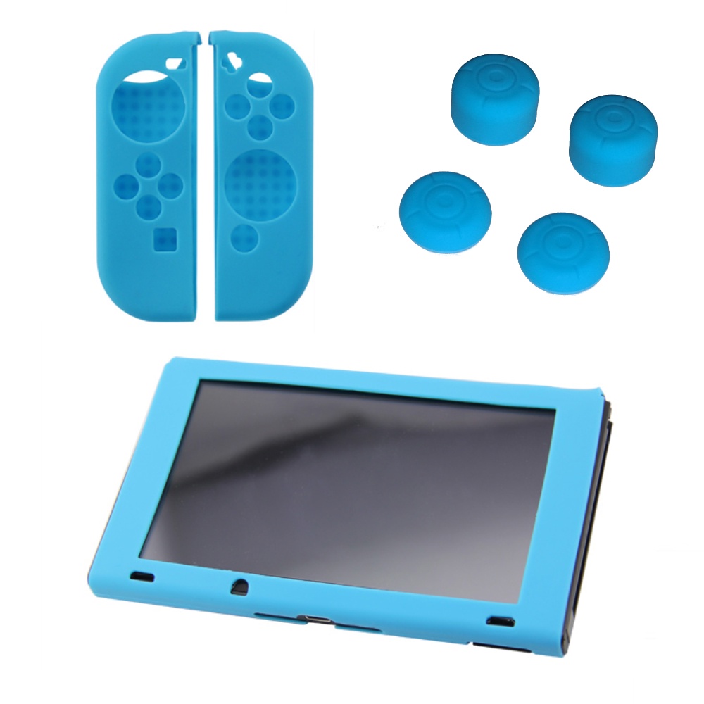 Kit capas de silicone para Nintendo Switch Tela e Joycons + 4 grips protetores extensores de analógicos