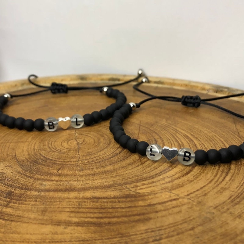 Kit Pulseiras Casal Amizade Iniciais Brilha no Escuro