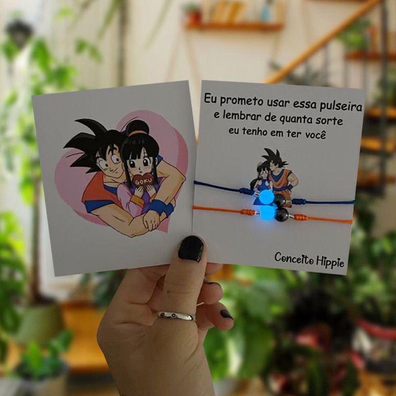 Kit 2 Pulseiras Goku E Chichi Brilha No Escuro E Magnéticas Conexão Casal Amizade BFF Anime