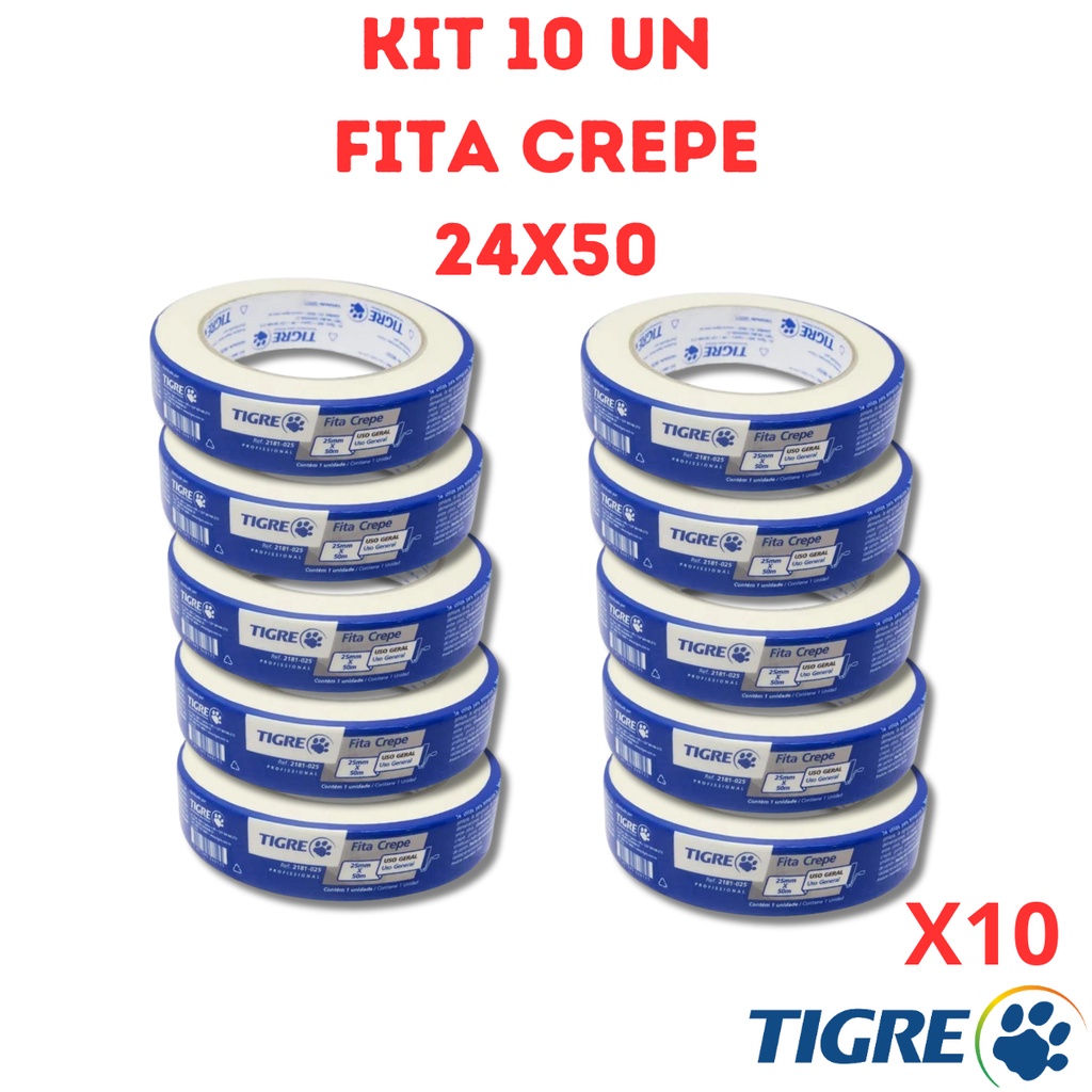 Fita Crepe 10 UN Fita Media Branca Tigre Fita 24X50 Uso Geral Fita Para Pintura 50 metros Fita Crepe