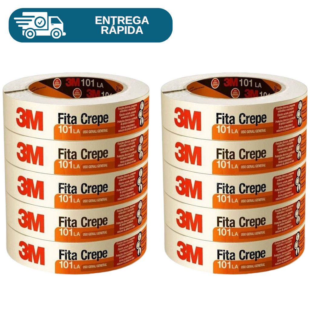 Kit 10 Fita Crepe Branca 3M 101LA 50 Metros - 18mm 24mm e 48mm Uso Geral Adevisa Marcação Artes Paredes