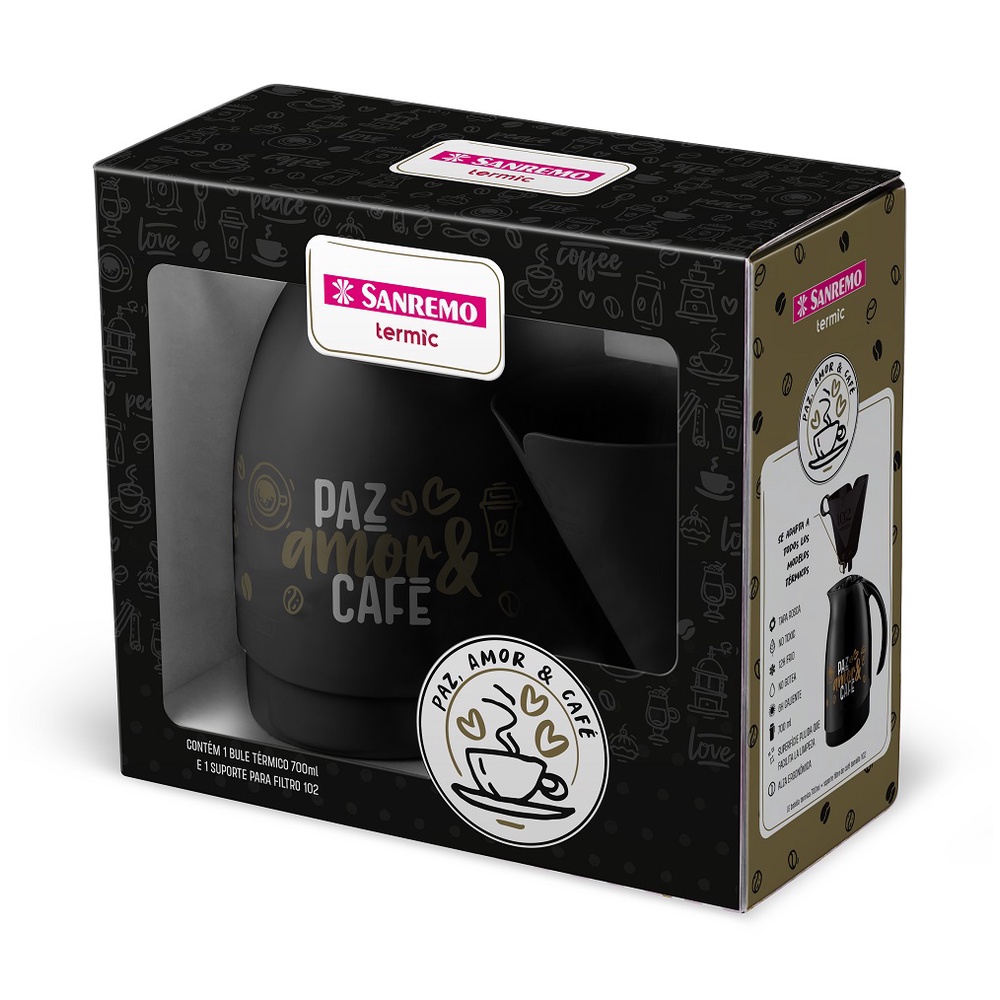 Conjunto Garrafa Térmica 700mL com Suporte para Filtro Coador de Café 102 Sanremo SR1011-68 Preta
