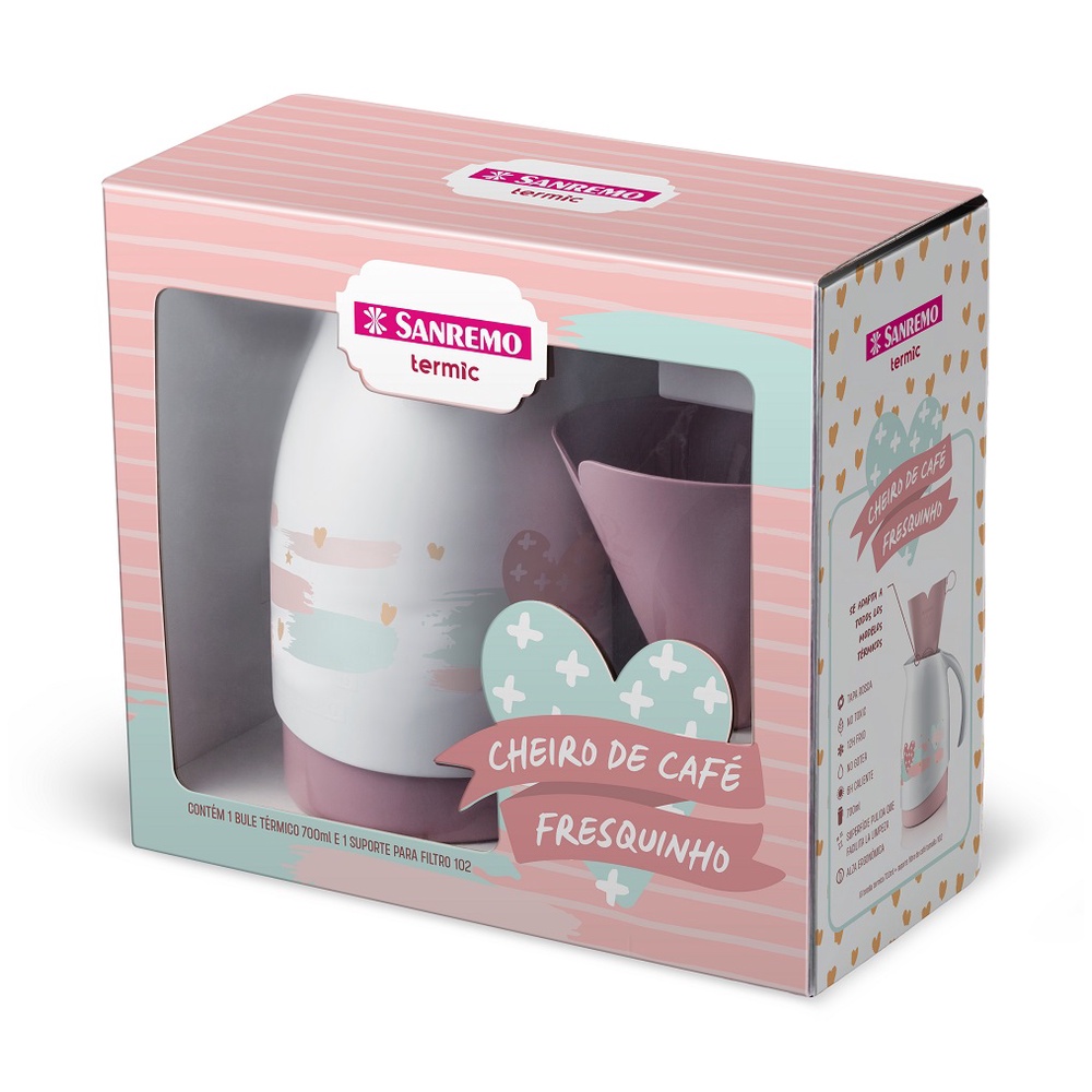 Conjunto Bule Térmico 700mL com Suporte para Filtro Coador de Café 102 Sanremo SR1011-70 Branco