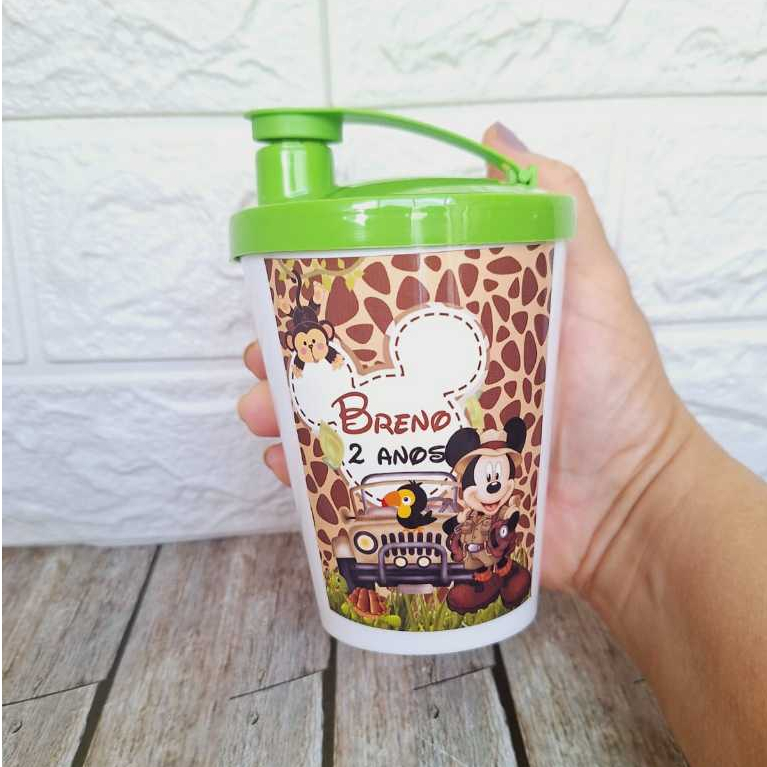 KIT 15 - COPO BABY COM TAMPA FLIP (SHAKE) 300 ML PERSONALIZADO EM ADESIVO VINIL -LEMBRANÇA DE FESTA INFANTIL