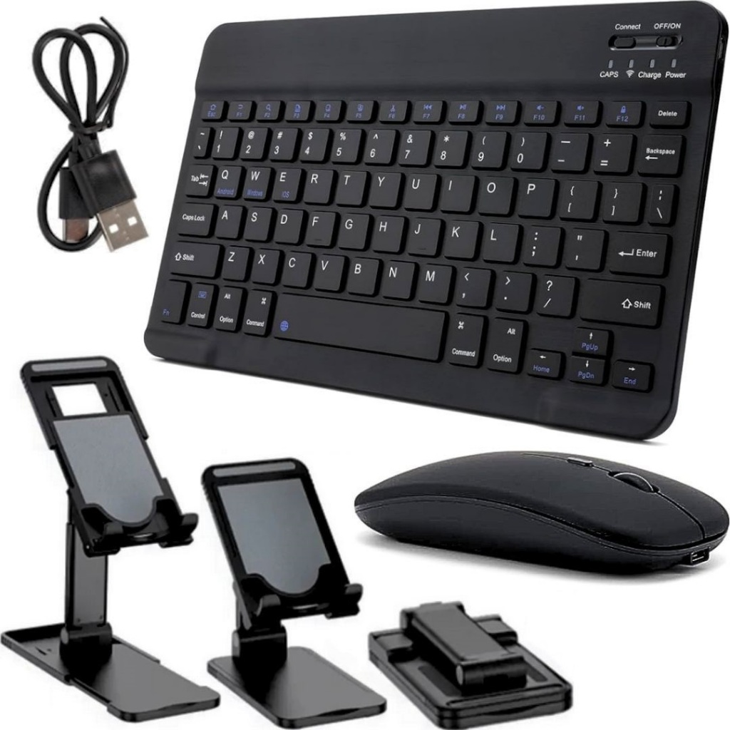 Kit teclado e mouse bluetooth sem fio portátil ultrafino recarregável + suporte de mesa para celular tablet