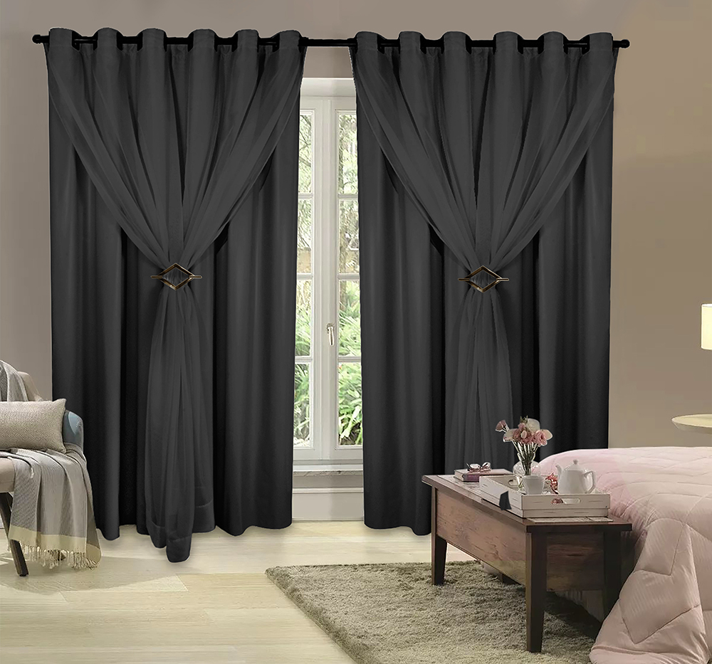 Cortina Corta Luz 2,80m X 2,50m 100% Blackout Com Voil Preto Para Sala Ou Quarto Para Varão Simples