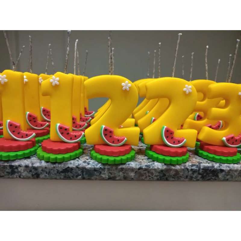 Melancia / Vela aniversário biscuit / topo bolo / decoração festa melancia magali