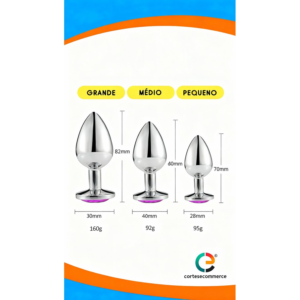 Plug Anal em Aço inox Polido com Detalhe de Joia na Base P M G Kit bdsm produto sex shop
