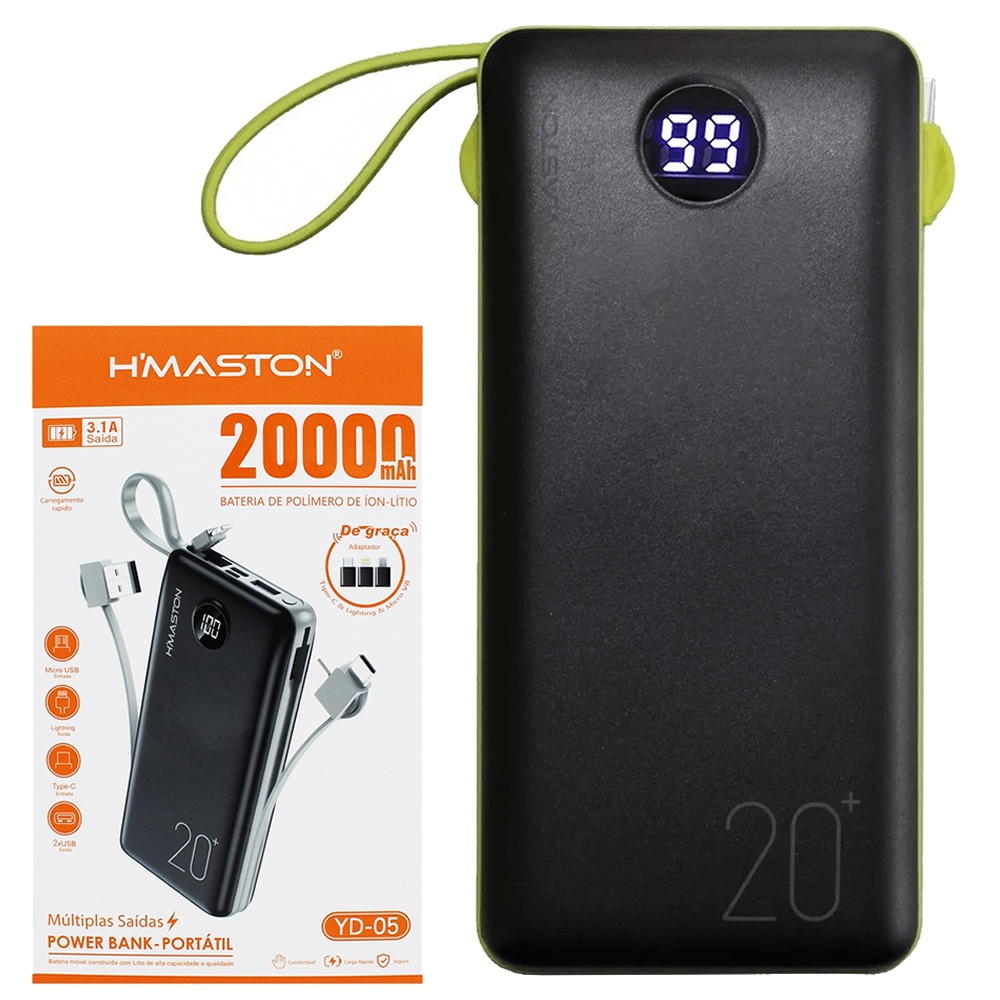 Carregador Portátil Power Bank 20.000mAh Hmanston Yd05 Multiplas Saídas