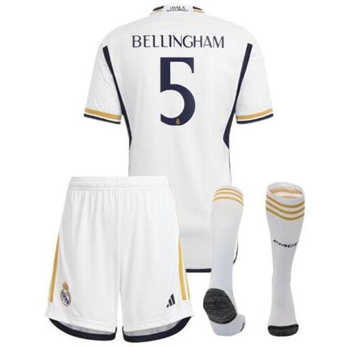23/24 Real Madrid away Crianças Camisa de Futebol Crianças Camisola Shorts Meias 2023/2024 Kit Crianças Bellingham Vini JR Modric Futebol Jersey Set