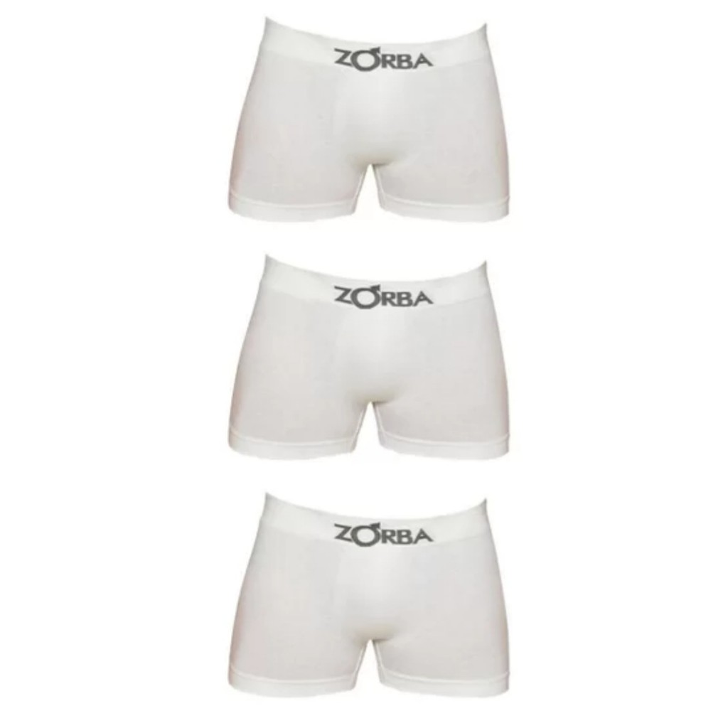 Kit 3 Cuecas Zorba Boxer Branco 781 Seamless de Algodão Sem Costura