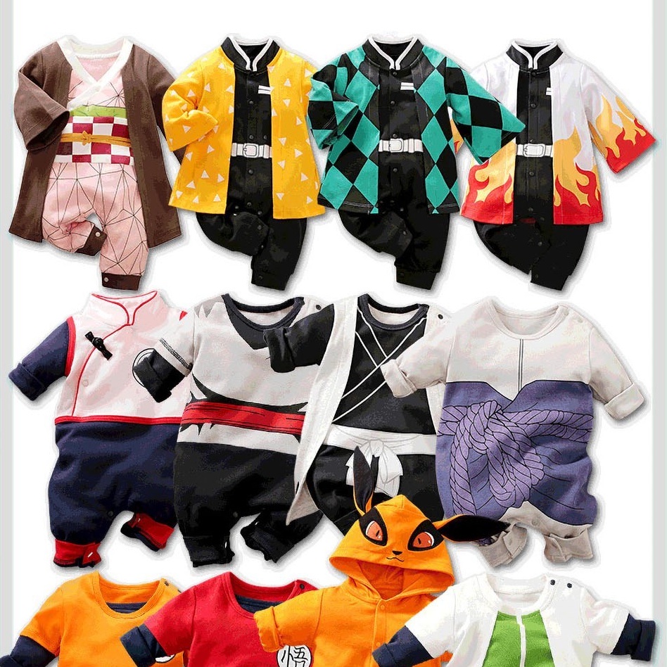 Anime Bebê Romper Mangas Compridas Macacão Recém-Nascidos Dos Desenhos Animados Demônio Slayer Cosplay Traje 1 Ano Velho Aniversário Outfit Crianças Menino Menina Roupas Dia Das Bruxas