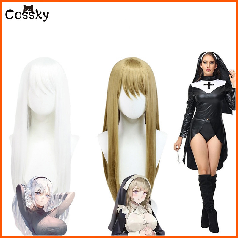Anime Sexy Nuns Design Original Cosplay Chowbie Uniforme Preto Vestido Peruca Tamanho Grande Fantasias De Halloween Para Mulheres