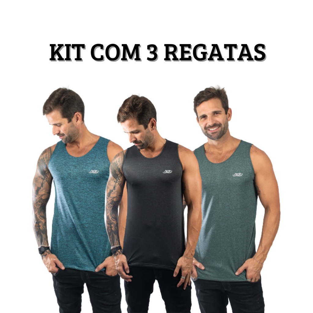 Kit de Regatas com 3 camisetas Dry-fit Treino Praia