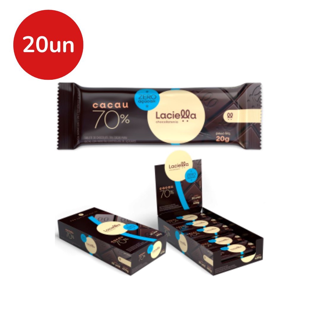 Kit com 20un Chocolate Laciella Tablete Zero Açucar e Zero Lactose 70% Cacau 20g
