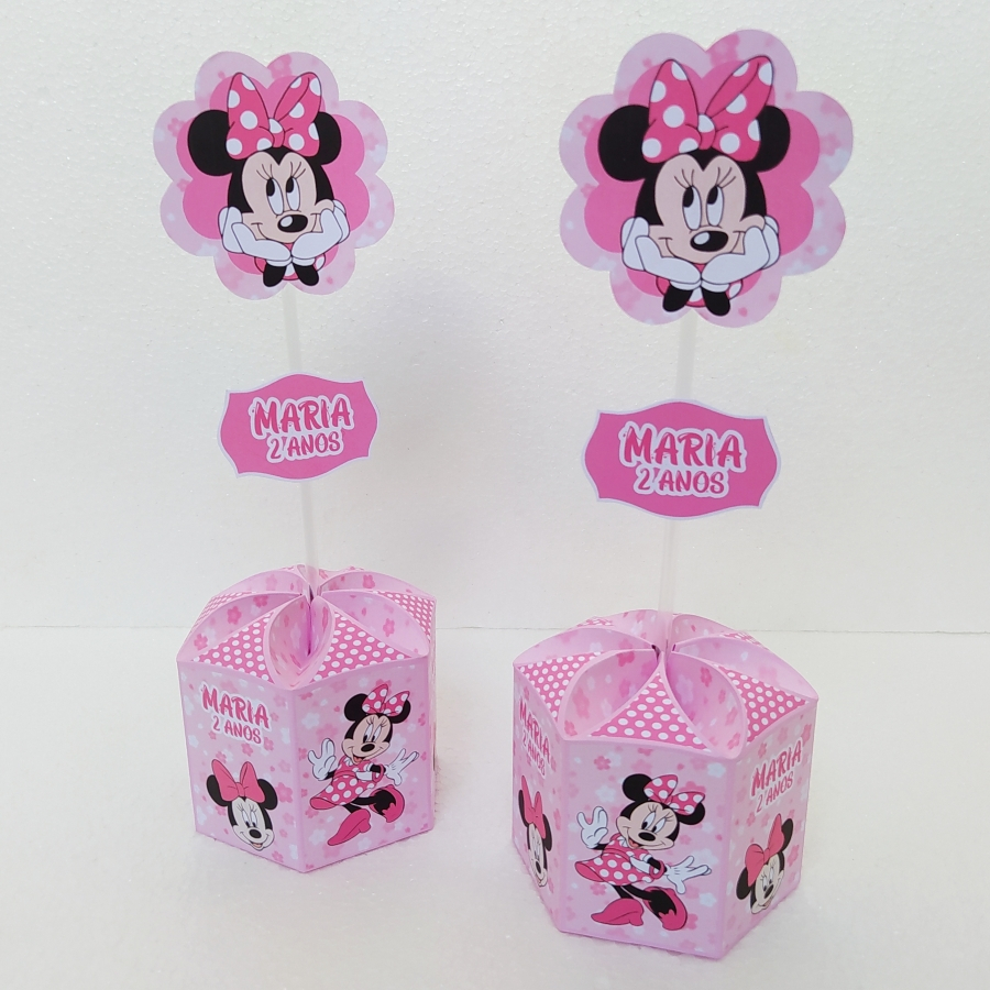 Centro de mesa sextavado Minnie Rosa, cachepô, arranjo de mesa personalizado 10/15 unidades