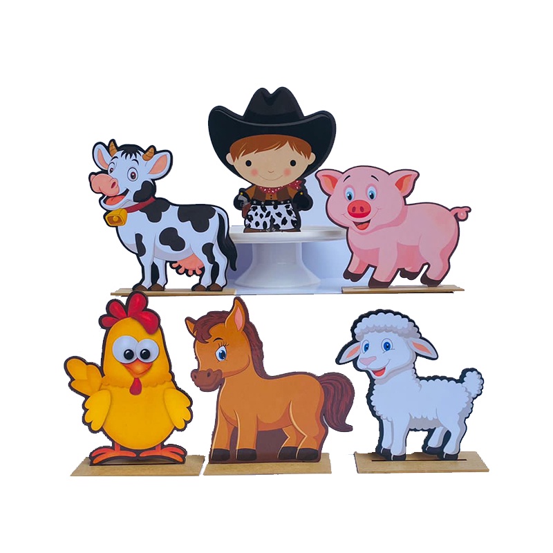 Kit Display de Mesa 6 Peças Festa Fazendinha Masculina MDF