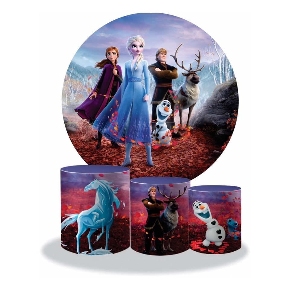 Kit Painel E Trio De Cilindro Frozen Em Tecido Sublimado 3D