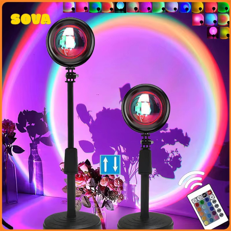16 Cores Em 1 Lâmpada Meet Sunset Light Rainbow Color Sun Never Sets Projection Lamp Stand Telescópico RGB Luzes De Controle Remoto