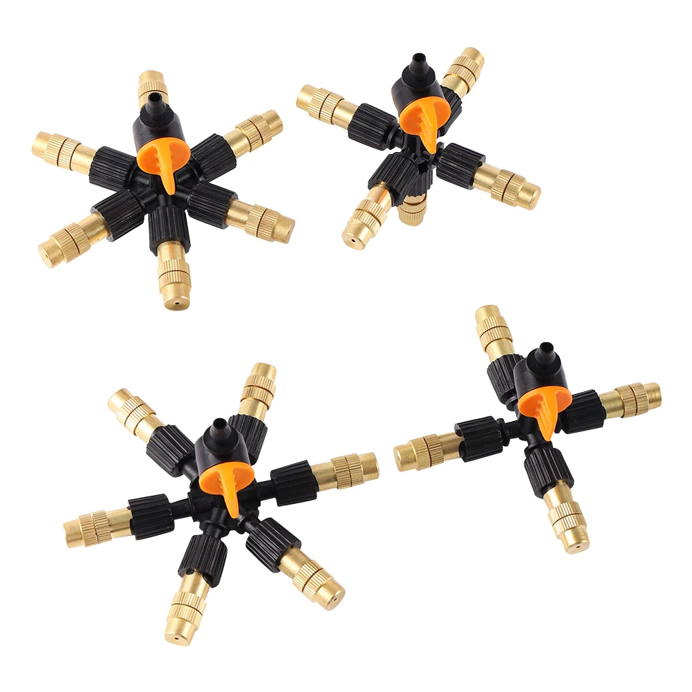 1 Conjunto Pendurador Ajustável 4/5/6/7 Cabeça De Latão Pulverizador De Bico De Névoa Cruzado Sistema De Irrigação De Jardim Aspersor De Refrigeração Com Válvula
