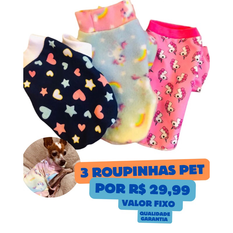 Oferta RELÂMPAGO Kit Completo:3 Roupinhas para pet - Apenas R$ 29,99- 100% Soft e Confortáveis -Machos e Fêmeas!Oferta