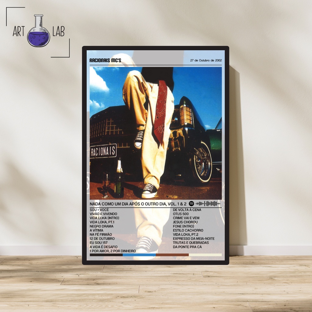 Quadro decorativo álbum Spotify Racionais MC's Nada Como Um Dia Após o Outro Dia moldura e vidro