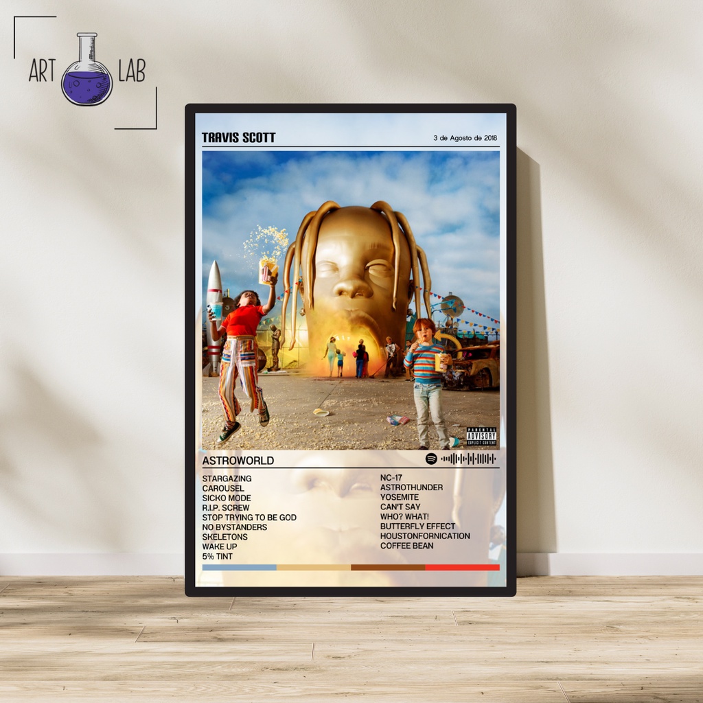 Quadro decorativo álbum Spotify Travis Scott Astroworld moldura e vidro