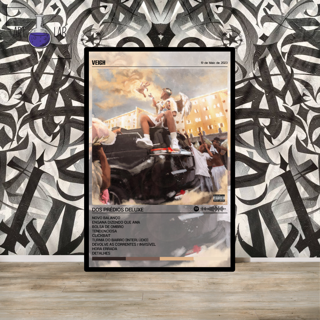 Quadro decorativo álbum Spotify Veigh Dos Prédios Deluxe moldura e vidro