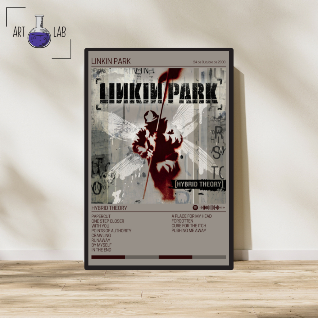 Quadro decorativo álbum Spotify Linkin Park Hybrid Theory moldura e vidro