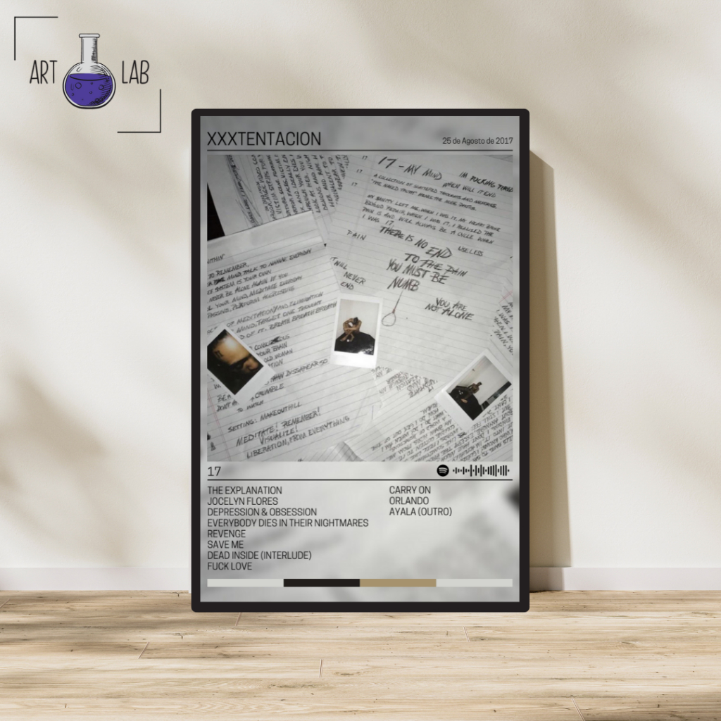 Quadro decorativo álbum Spotify XXXTENTACION '' 17 '' moldura e vidro