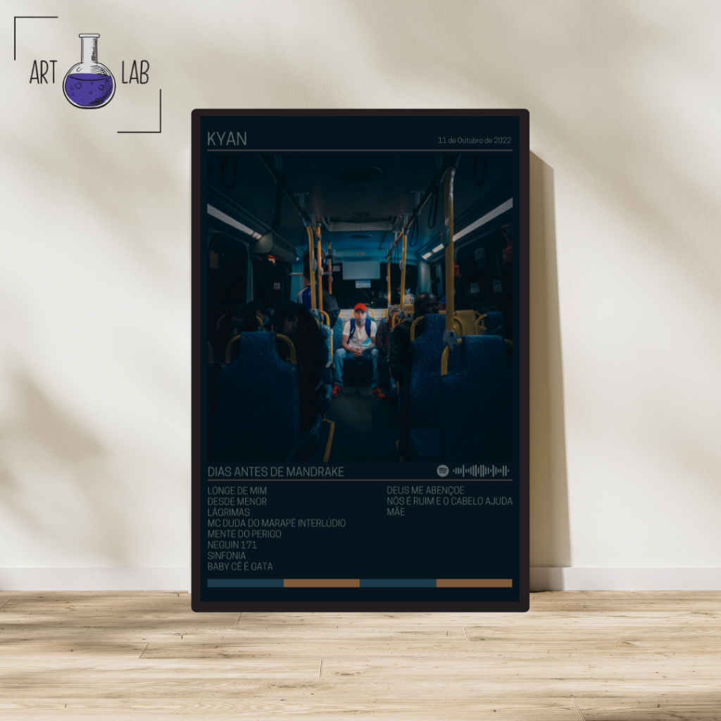 Quadro decorativo álbum KYAN DIAS ANTES DE MANDRAKE moldura e vidro Spotify