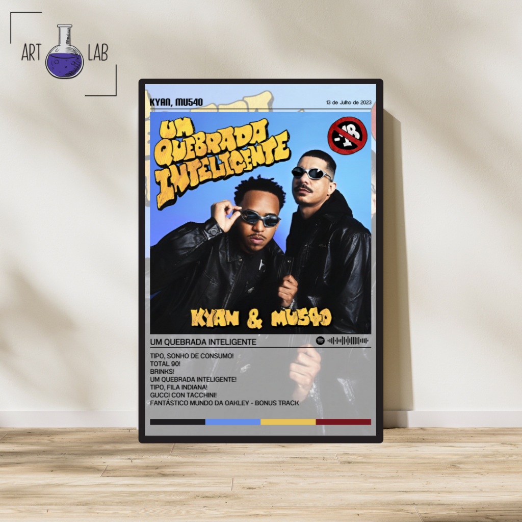 Quadro decorativo álbum Spotify Kyan Um Quebrada Inteligente moldura e vidro