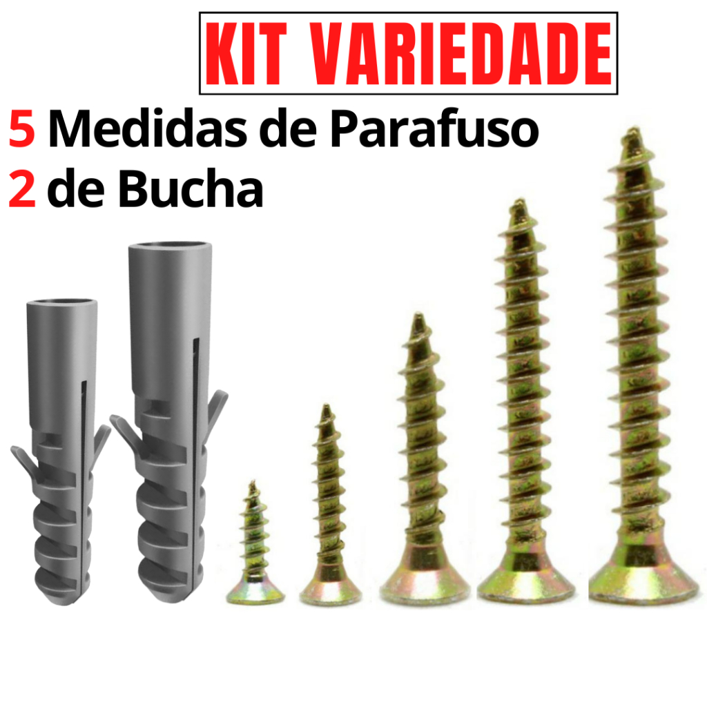 Parafuso com Bucha Fixação Parede Kit Parafusos Philips para Madeira MDF Móveis com Kit Buchas 6mm e 8mm