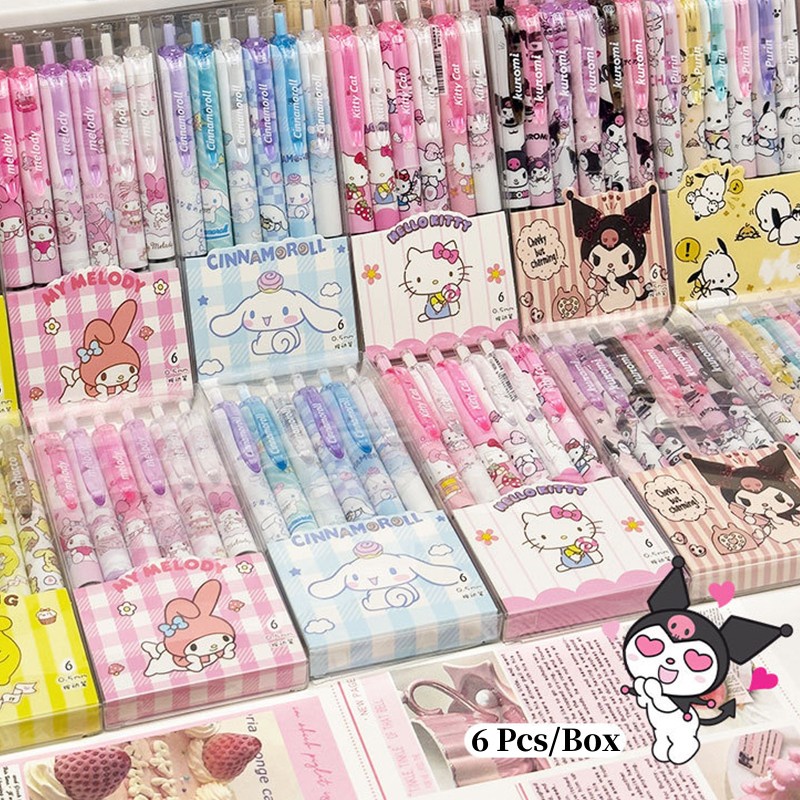 6Pcs Sanrio Kuromi Mymelody Canetas de Gel ST Nib Secagem Rápida Alta Qualidade