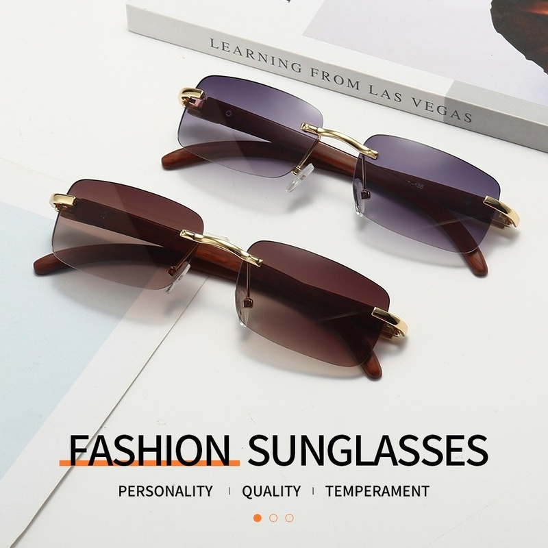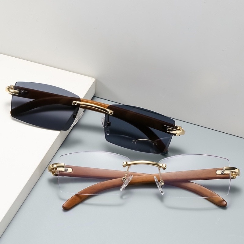 Óculos De Sol Masculino Sem Aro Peça Oceânica Corte Borda Imitação De Madeira Grãos