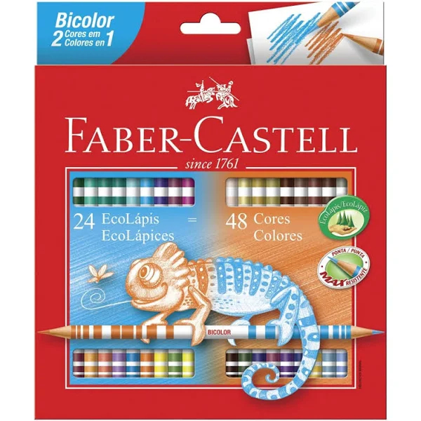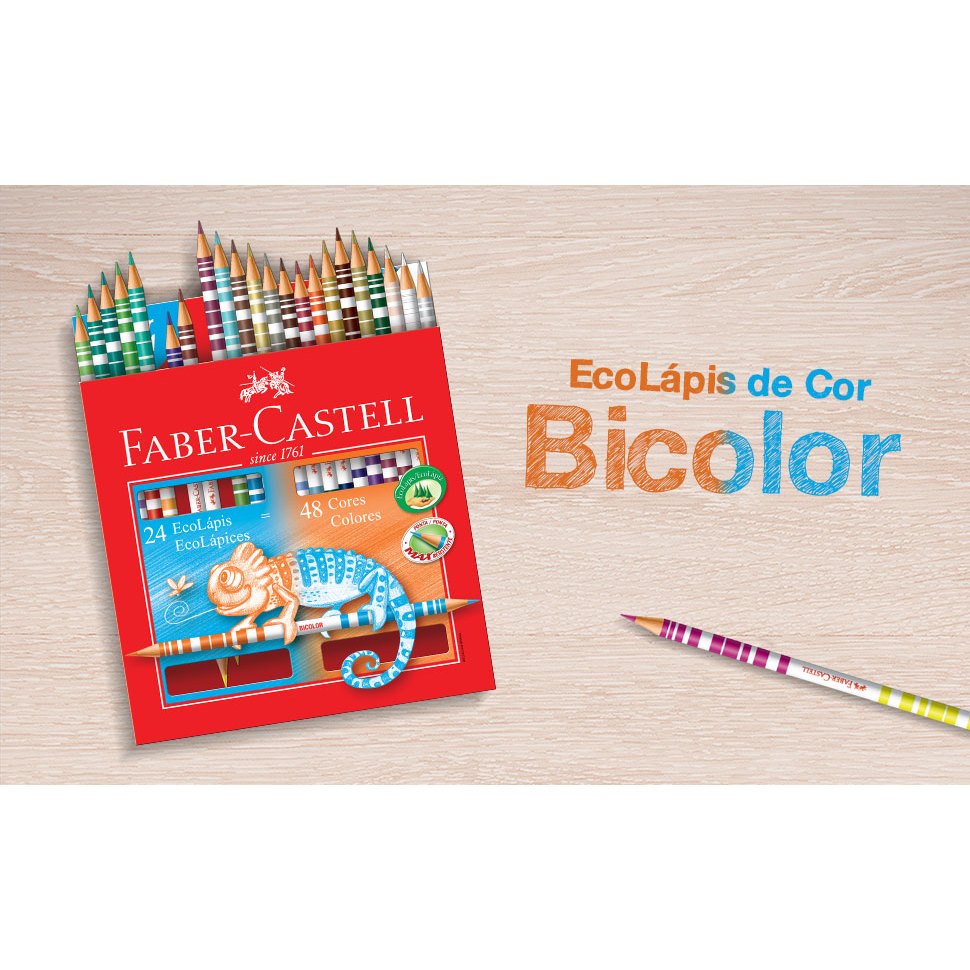 Lápis De Cor Faber Castell Bicolor 24 Lápis = 48 Cores/24 Cores + 4 Lápis Bicolor/12 cores e 2 Ecolápis Bicolor