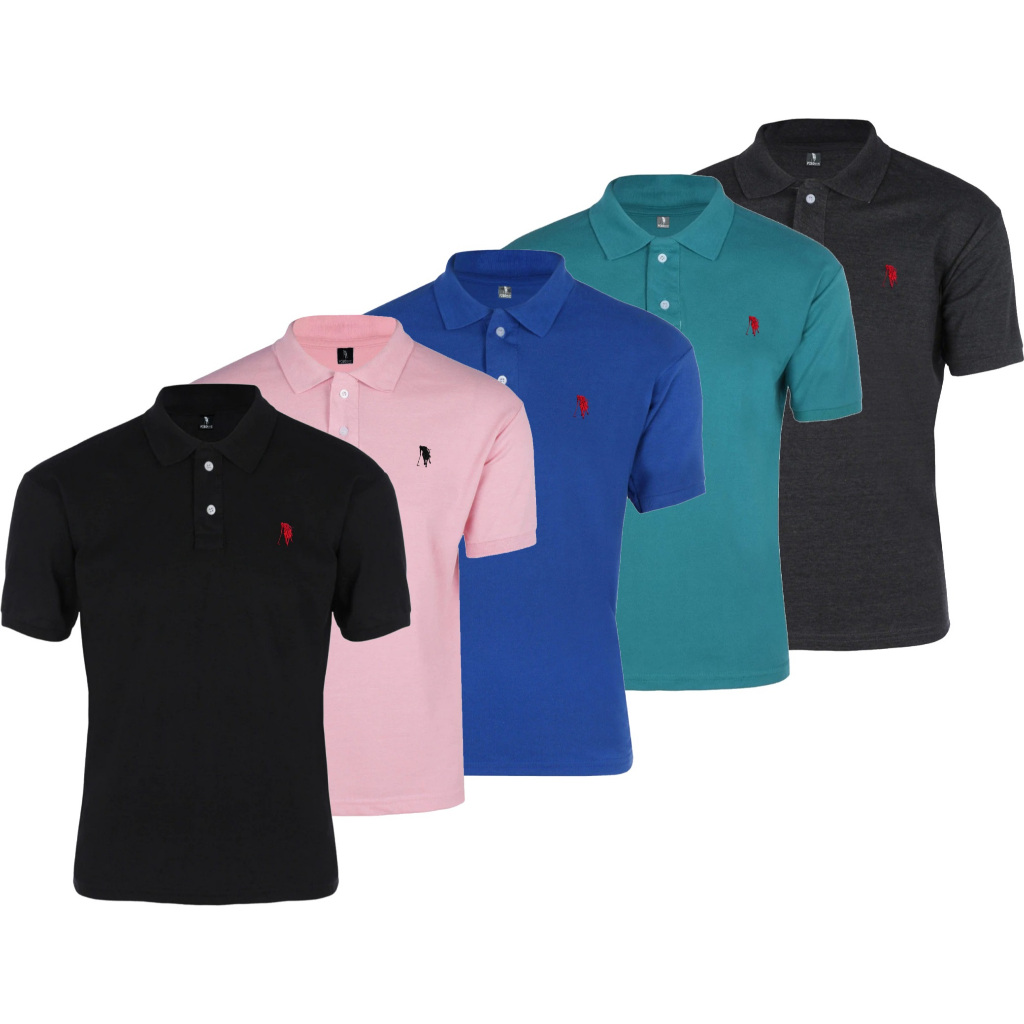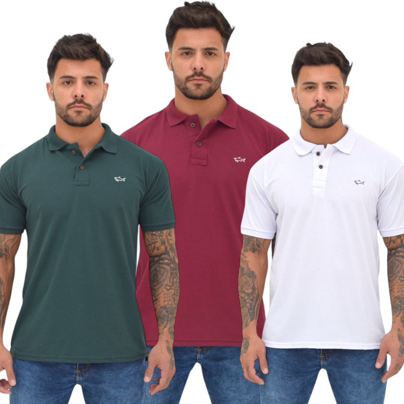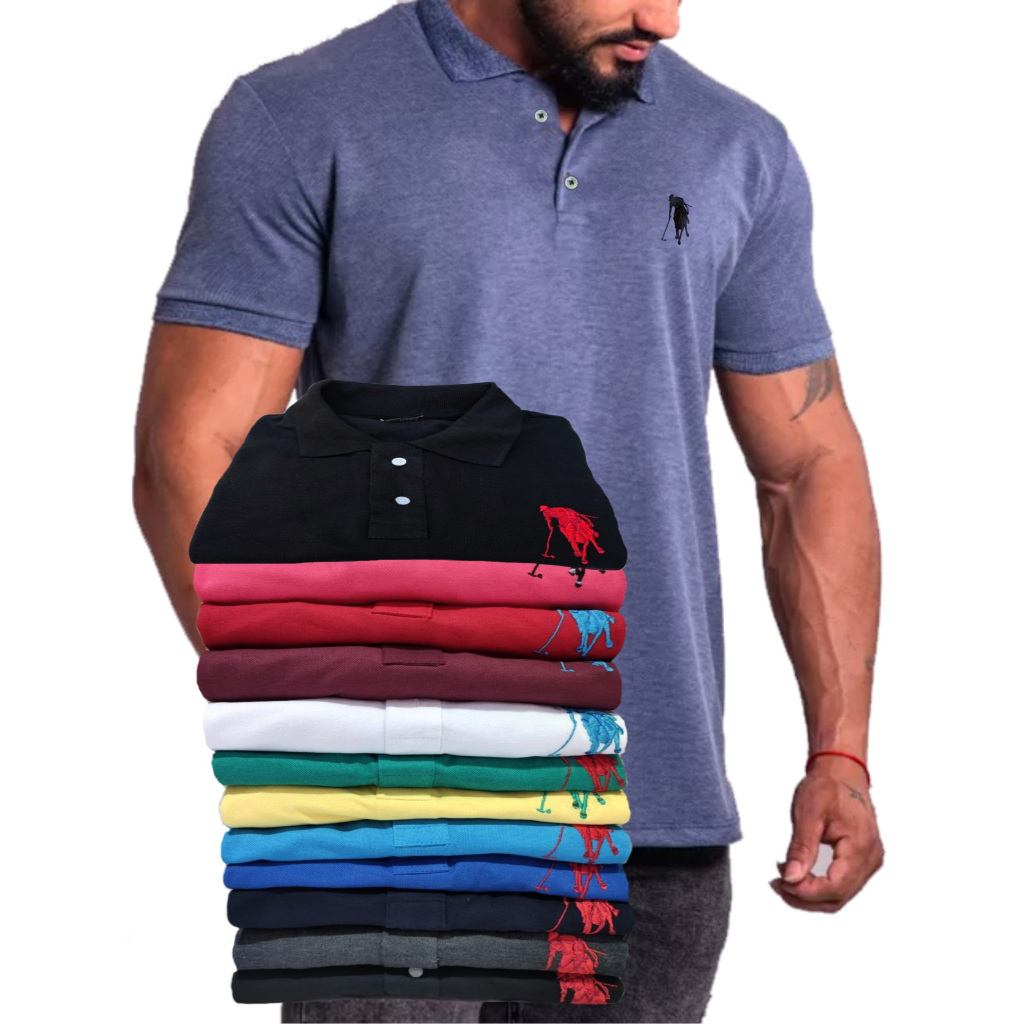 Kit de 5 camisa polo masculina algodão piquet 24 marcas e cores variadas