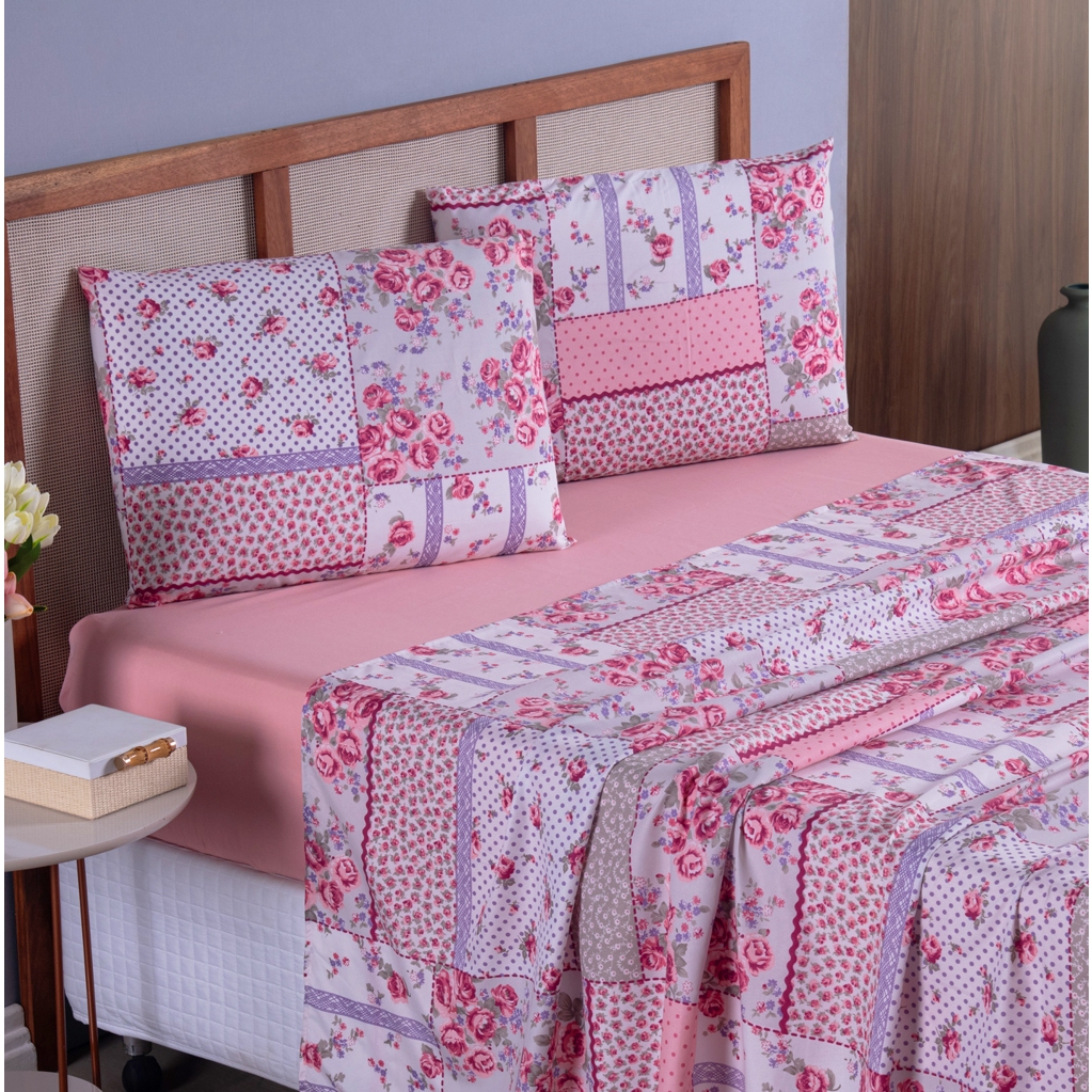 Jogo de Lençol 4 Peças 400 Fios Percal - Casal Padrão / Queen / 3 Peças Solteiro - ESTAMPAS SORTIDAS COM ELÁSTICO