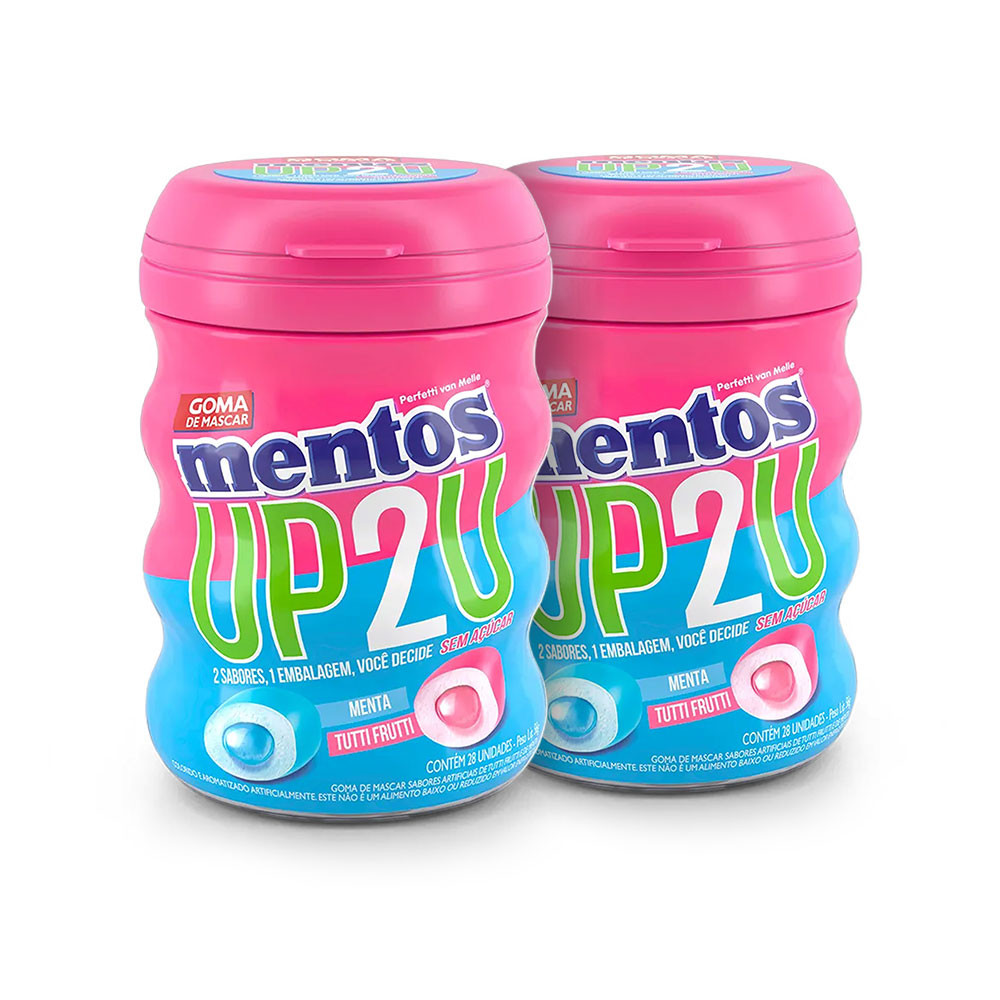 Kit 2x Goma Mentos UP2U Garrafa 56g Menta & Tutti-Frutti