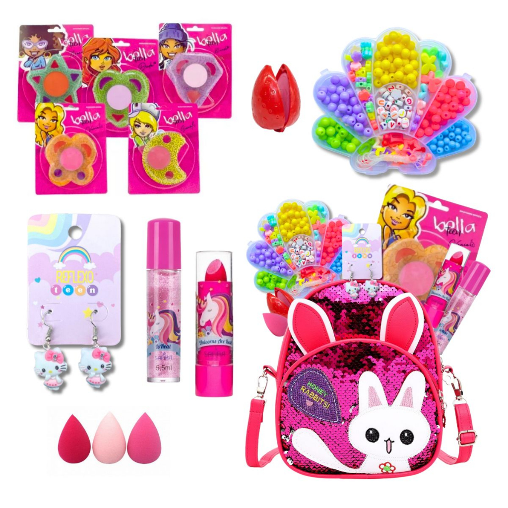Combo Kit De Maquiagem Infantil C/ Maleta Miçanga Completo