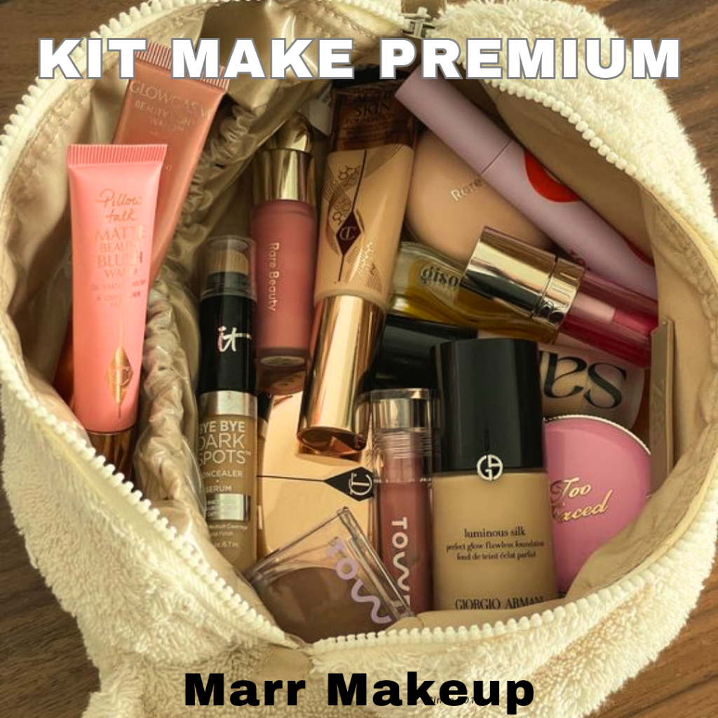 Kit Maquiagem Make Completo com Pinceis Pincel Pó Blush Iluminador Lapis Rimel Gloss Brilho Necessaire Bolsa Maleta
