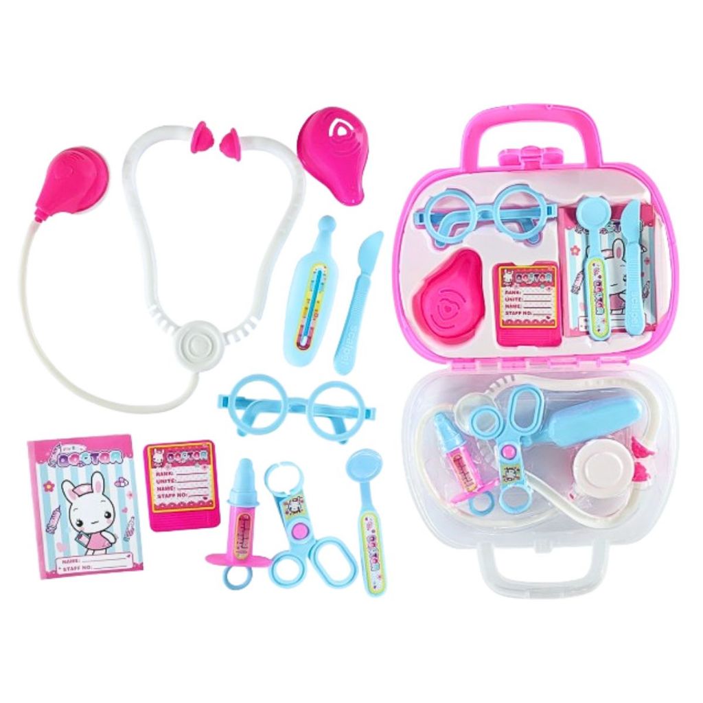 Brinquedo Kit Maleta de Médico Infantil Rosa Bolsa Médica Enfermeira Profissões p/ Crianças Meninas Aniversário Dia das Crianças